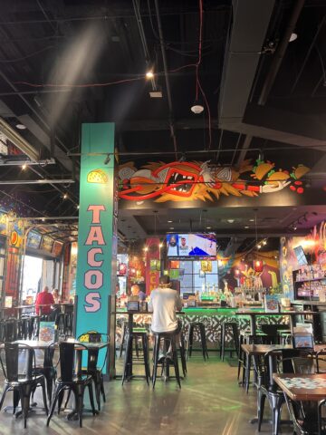 The sights inside Condado Tacos, equipped with indoor and outdoor seating!